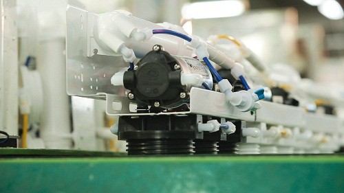 Chúng tôi có hệ thống nhà máy sử dụng robot tự sản xuất lõi lọc nước liền khối theo công nghệ tiên tiến hiện đại nhất chuyển giao từ Hàn Quốc với công suất lớn lên đến 10.000 sản phẩm/ngày. Robot sản xuất hàng loạt có khả năng tăng năng suất và hạn chế tối đa hàng bị lỗi, sản phẩm tạo ra có kích thước khe hở 0,3 ~ 0,1 micron. Quy trình sản xuất đồng bộ dưới sự giám sát nghiêm ngặt khắt khe theo quy định Bộ y tế ngành lọc nước và Viện kiểm định chất lượng, đảm bảo tiêu chuẩn xuất khẩu quốc tế.