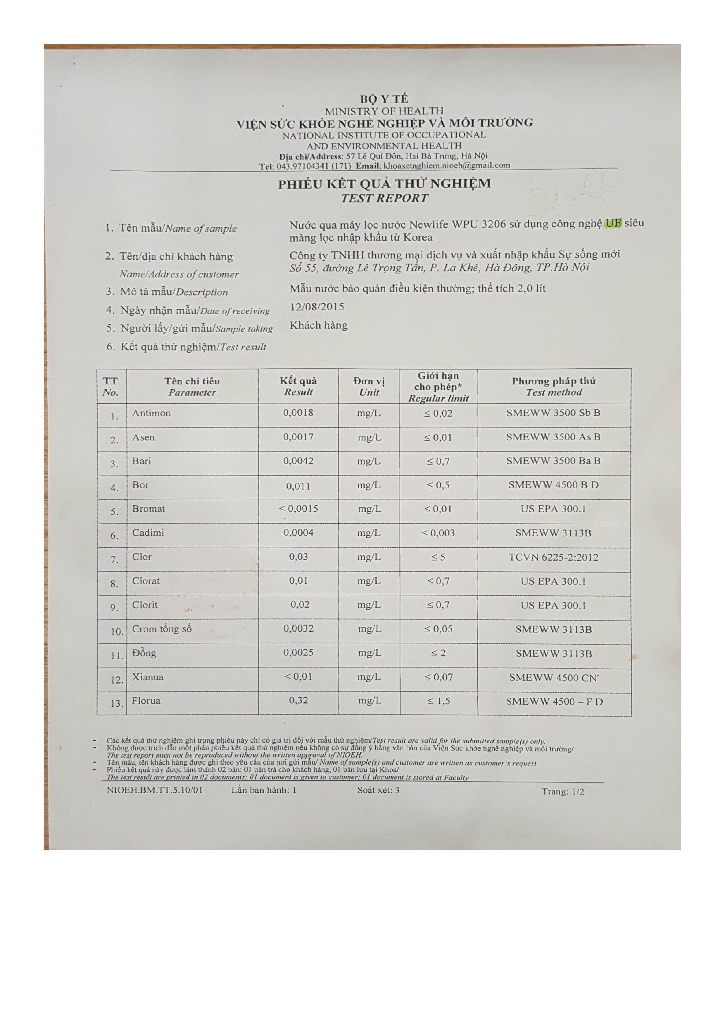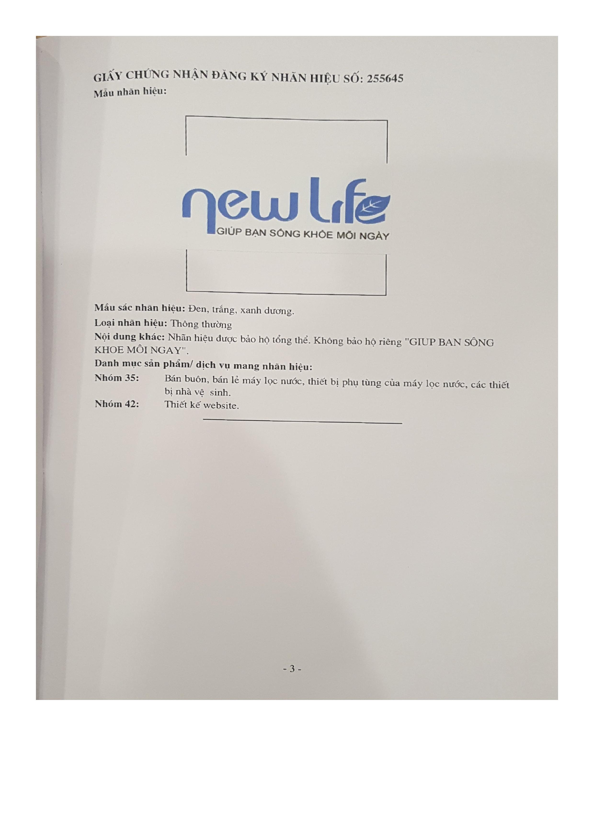 New Life đã nhận được rất nhiều chứng nhận thành tích nổi bật: Chứng nhận Màng UF, Chứng nhận Công nghệ RO, Công nghệ RO68, Chứng nhận Kiểm nghiệm nước.
